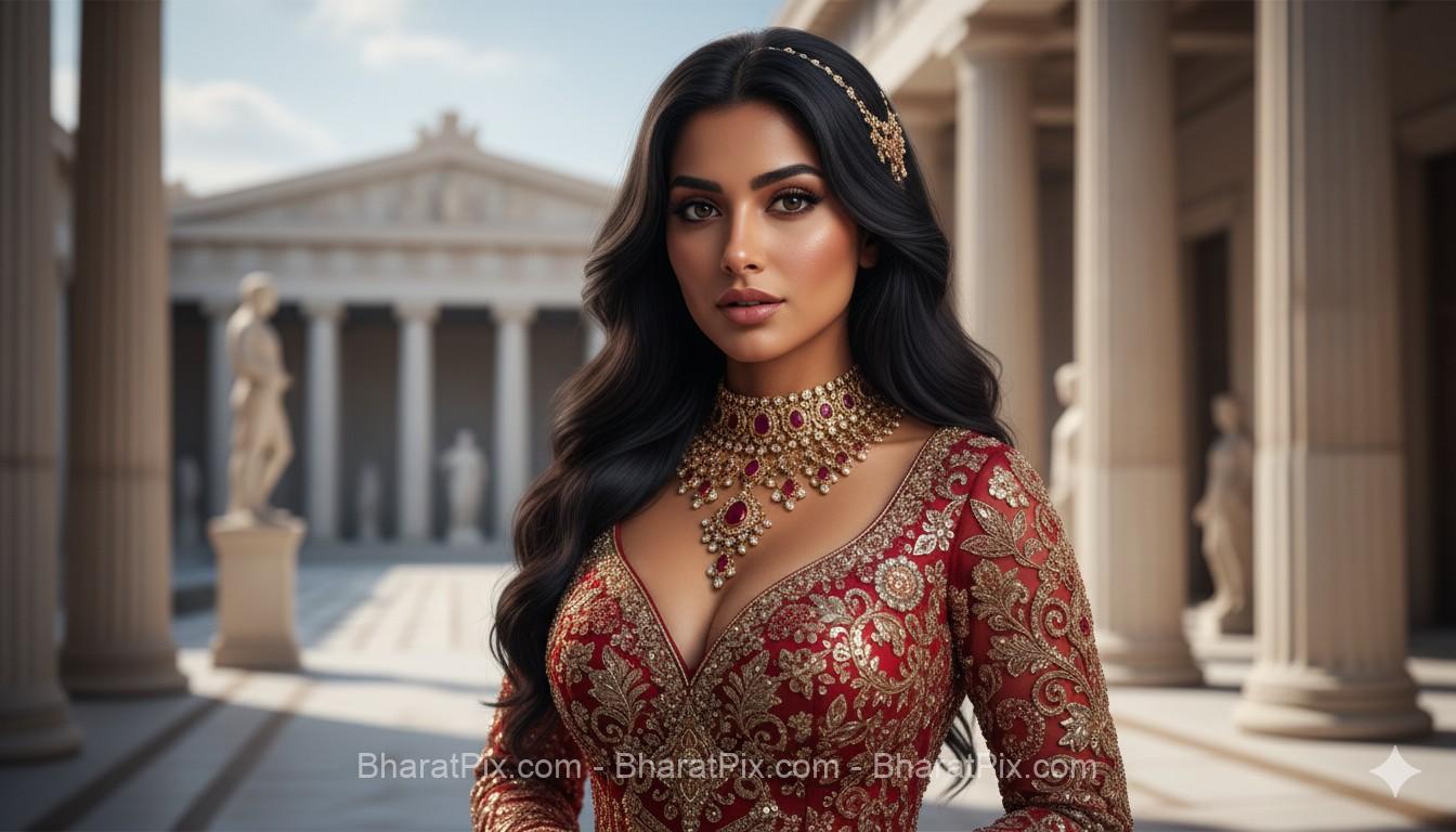 Go to https://aistudio.google.com , create a new chat and select nano banana . Upload your image and paste the prompt Prompt : A close-up photo of attractive Indian queen, super exposing queen clothes, young, natural, necklace, high heels, hyper realistic, 8k, skin imperfections, skin texture, flirty eyes, in a Greek palace, UHD, ULTRA DETAILS . Hyper-realistic.